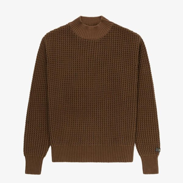 • Brown mockneck sweater
